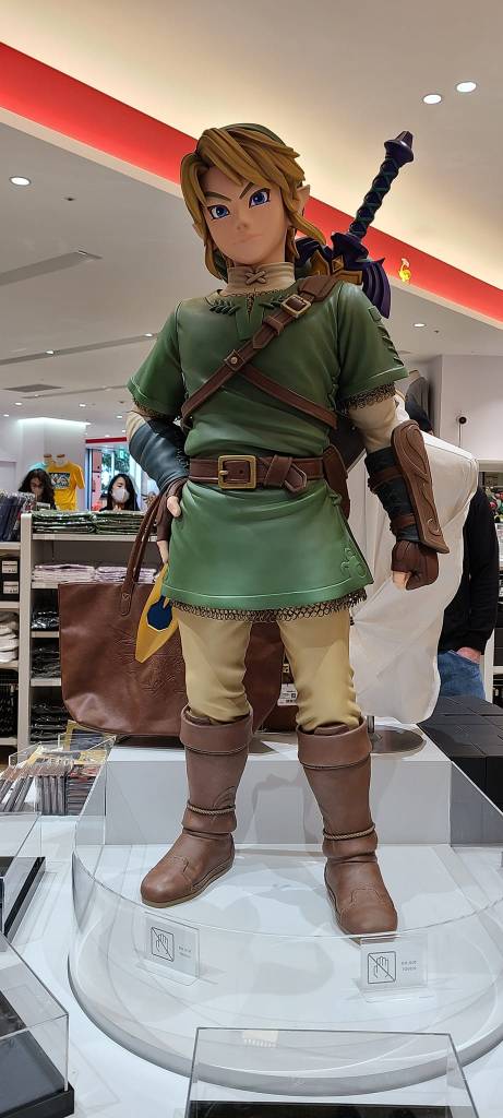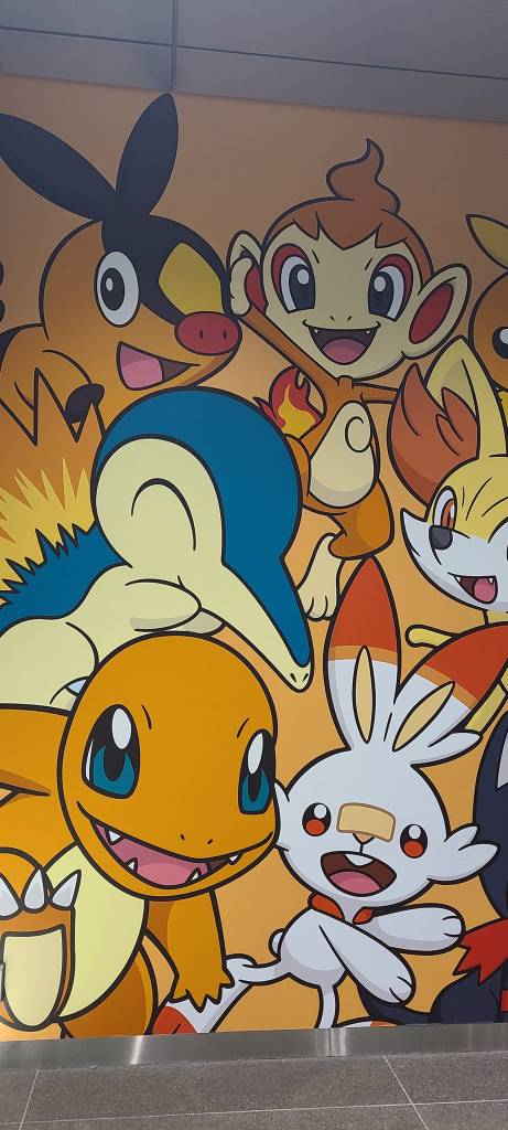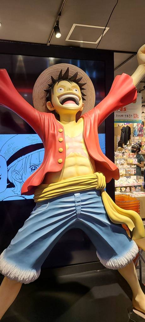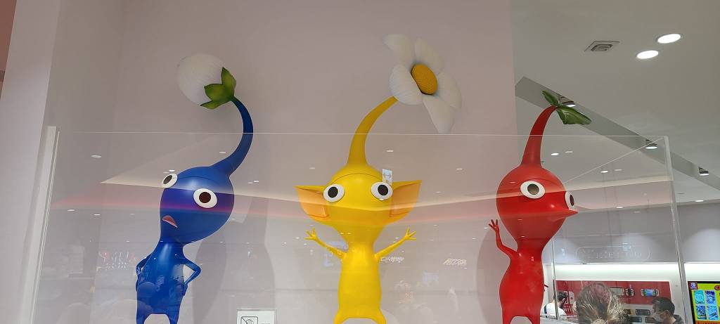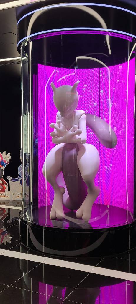 The next day I made my way to the other Pokemon Center which is where the Pokemon Cafe and the Nintendo store is. This one is within a shopping center and I wanted to check out the park they had on top of this shopping center, however I did not get to.  First I checked out the Pokemon Center and had to get a nice picture of Mewtwo. Here I bought a Togepi plush. I then went to check out the Nintendo store. They had some Mario, Legend of Zelda, Animal Crossing, and Pikmin merch in at the moment as well as some other items.  In the Nintendo store I had to purchase the red, blue, and yellow Pikmin plushes. I love the game Pikmin and could not pass up the great price for three Pikmin. There was also an anime store which held mainly stickers and in my opinion, basic anime merch. Nothing too fancy or cool and nothing that caught my interest to potentially buy. There was also a nice Capcom store but again nothing I wanted to buy.  Around the shopping center there was an 8-bit Mario to see, a picture of Luffy from OnePiece as well as Ryu from Street Fighter. I did enjoy this shopping center a lot.
