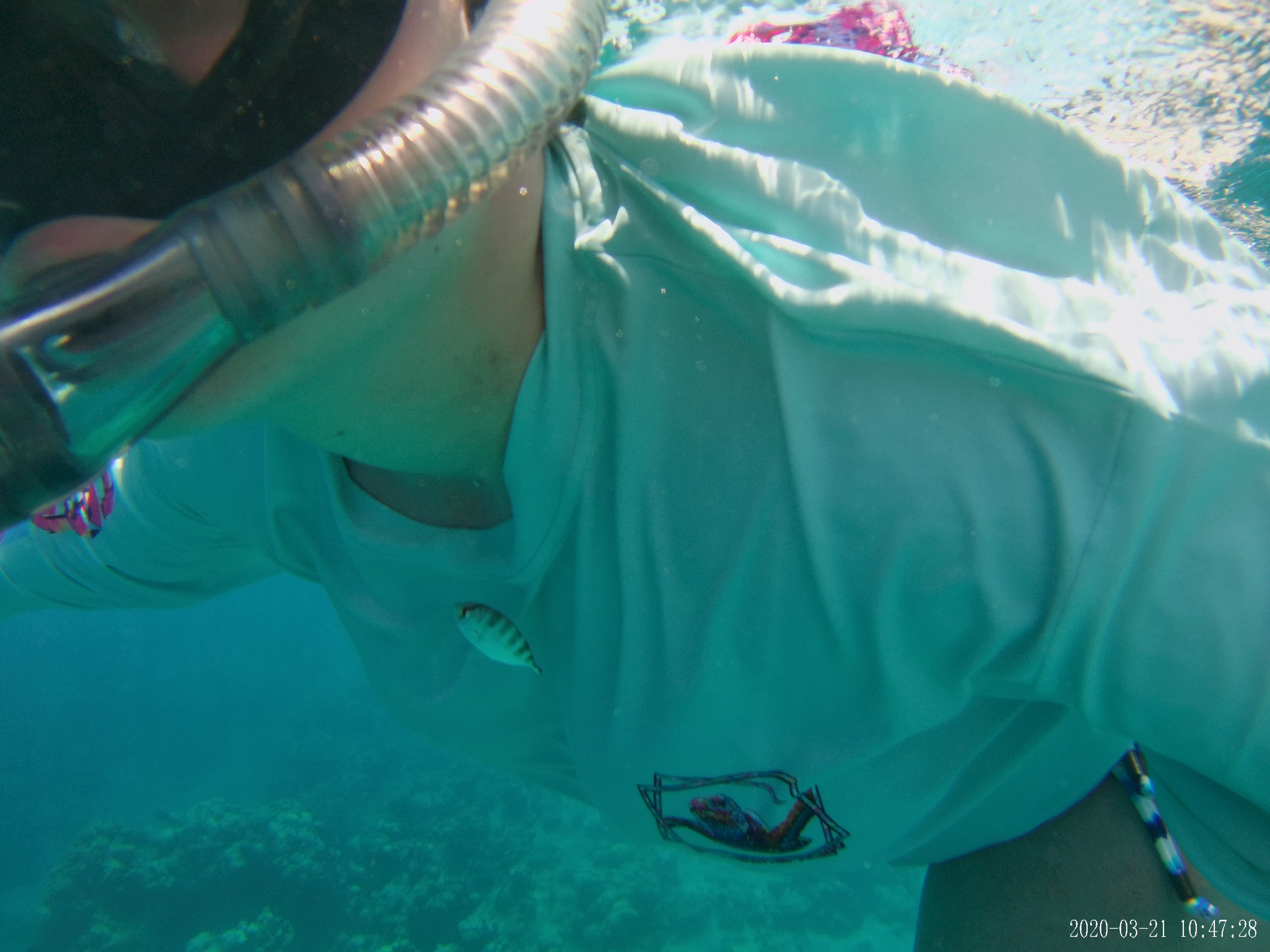 We decided to go snorkeling from Eden Rock, and it was a blast.  Some marine life was seen, and I enjoyed seeing the underwater formations.  In one of the pictures, we had a fish friend that swam with us the entire time!  Next time we are here, I’ll hopefully have my partner become a certified diver, and we can scuba dive together.  After snorkeling for a while, we got lunch at Eden Rock and it was quite delicious.  I got a fried coconut shrimp dish that was delicious, and my partner had chicken tenders.  The food was very delicious.  We stopped at another dive center near the port ,Deep Blue and Off the Wall and got some rash guard shirts from there, as well as some souvenirs from shops in Grand Cayman.  We walked around George Town for a bit and took in the area.  Next time, I’ll hopefully have some dive photos to share with you!
