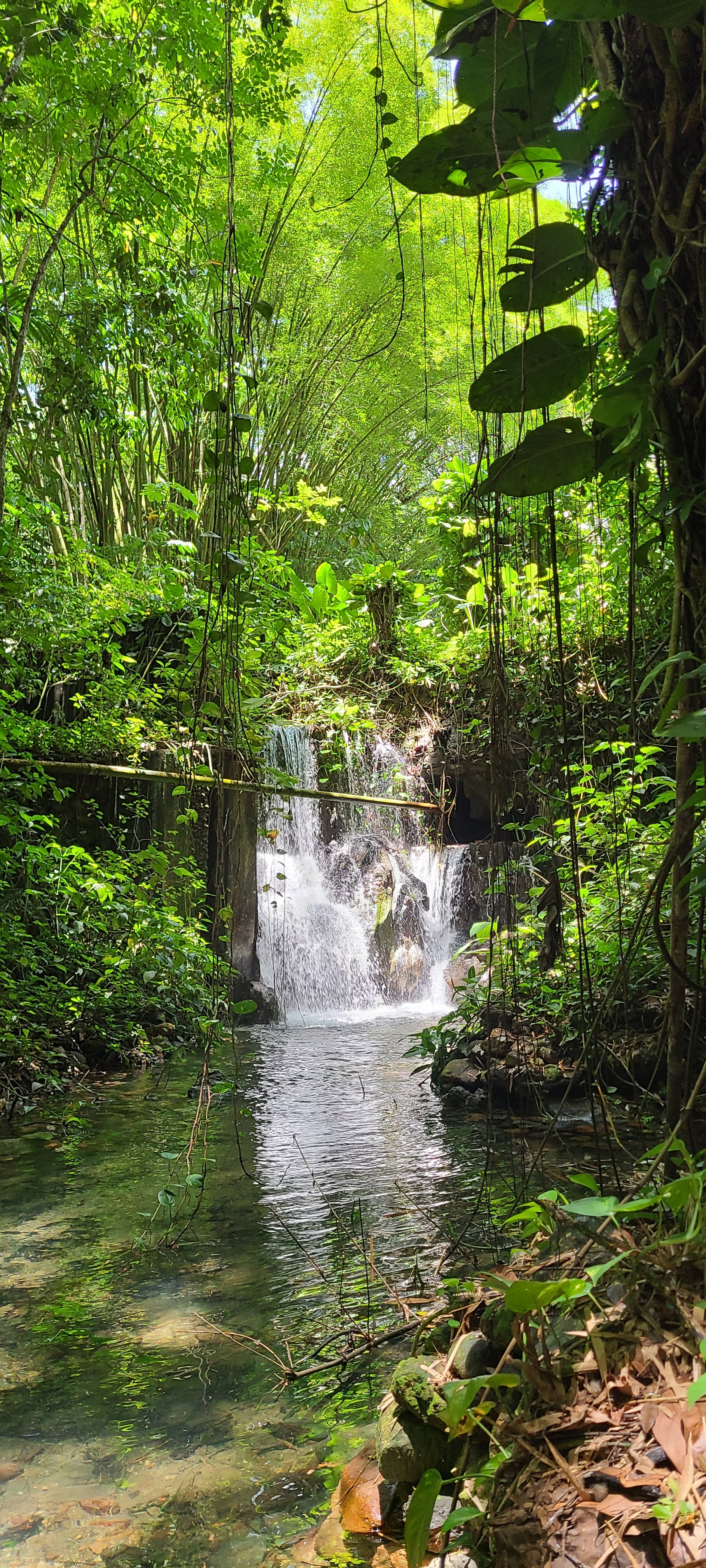 The hike starts light, with some views of ponds and a small waterfall. Then the real hike begins after one or two smaller ziplines.  We begin climbing rocky paths and terrain where you’ll be enjoying some good views, while going through a nice stair climber workout.  On our hike upwards, we begin getting  a canopy view of the forest we are in.