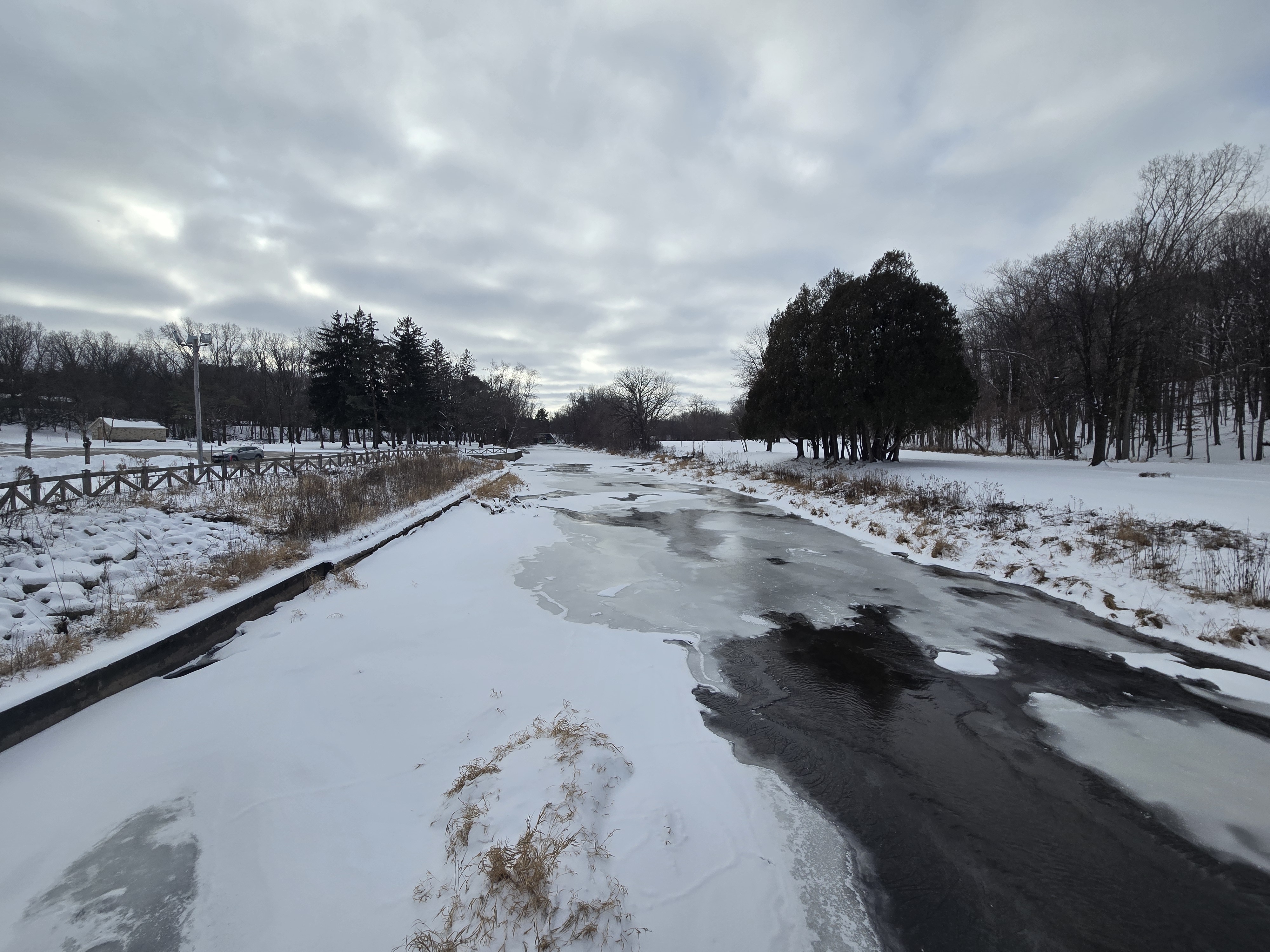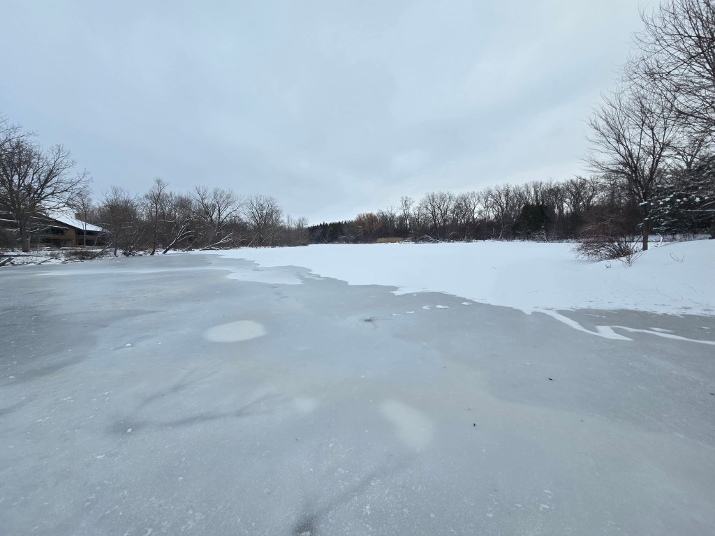 After leaving the wildlife sanctuary, I found a small park called Communiversity Park UWGB specifically to view Green Bay. This area was small and was closed off to the parking area due to snow, but we pulled over to get closer to the bay and enjoy the scenery. It was nice seeing the bay frozen over, and witnessing people ice fishing upon the bay. I absolutely loved the snow and ice and was enjoying every moment out there!