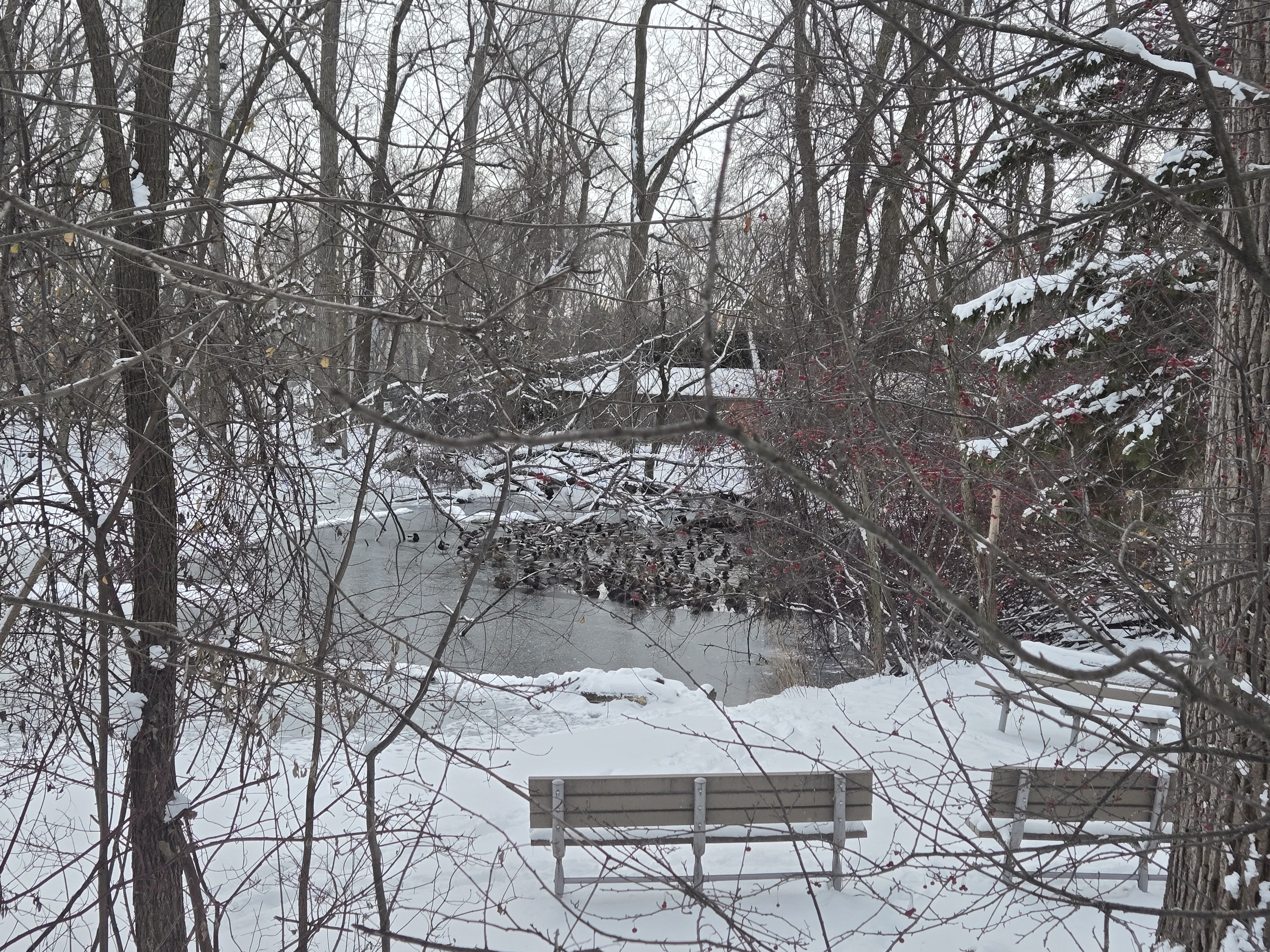It was a beauty to behold in my opinion, to see a waterfall frozen solid! This was one of the parks I was looking forward to seeing when I began looking into this trip to Green Bay, and I was astonished at the view of this frozen mass. At this park, my partner and I met with my brother and step-dad where we stayed a bit to enjoy the view together.
