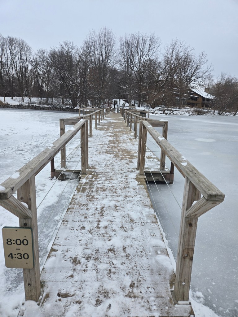 This day was packed full of some hiking and catching some wonderful views of Wisconsin. We went around to 4 or 5 different parks and enjoyed the nature offered to us around Green Bay! Pamperin Park was our first stop of the day and it had a wonderful bridge, paired with the frozen river. It looked magnificent! This area also has a disc golf course, which seems like it would be fun to play in warmer weather.
