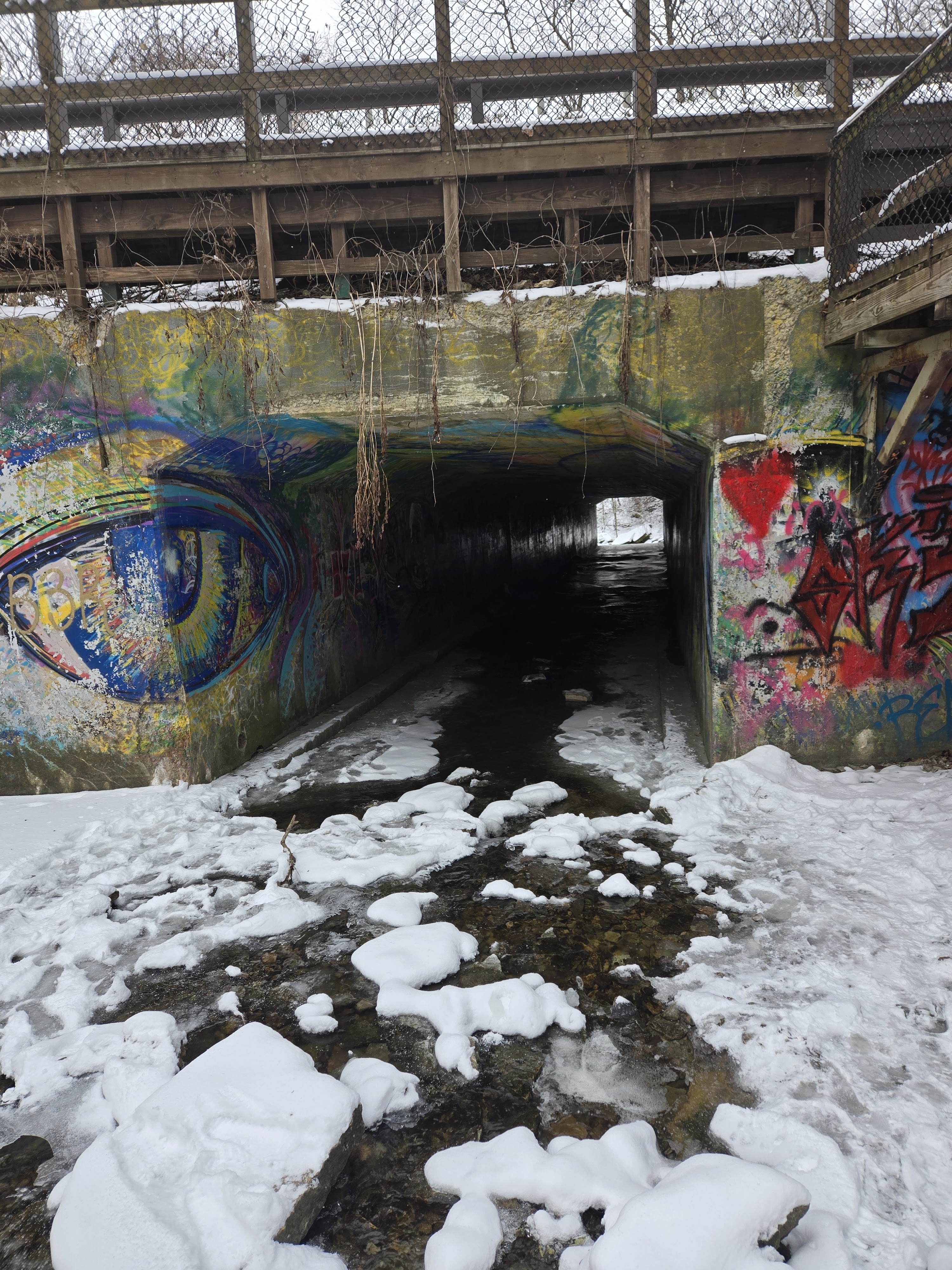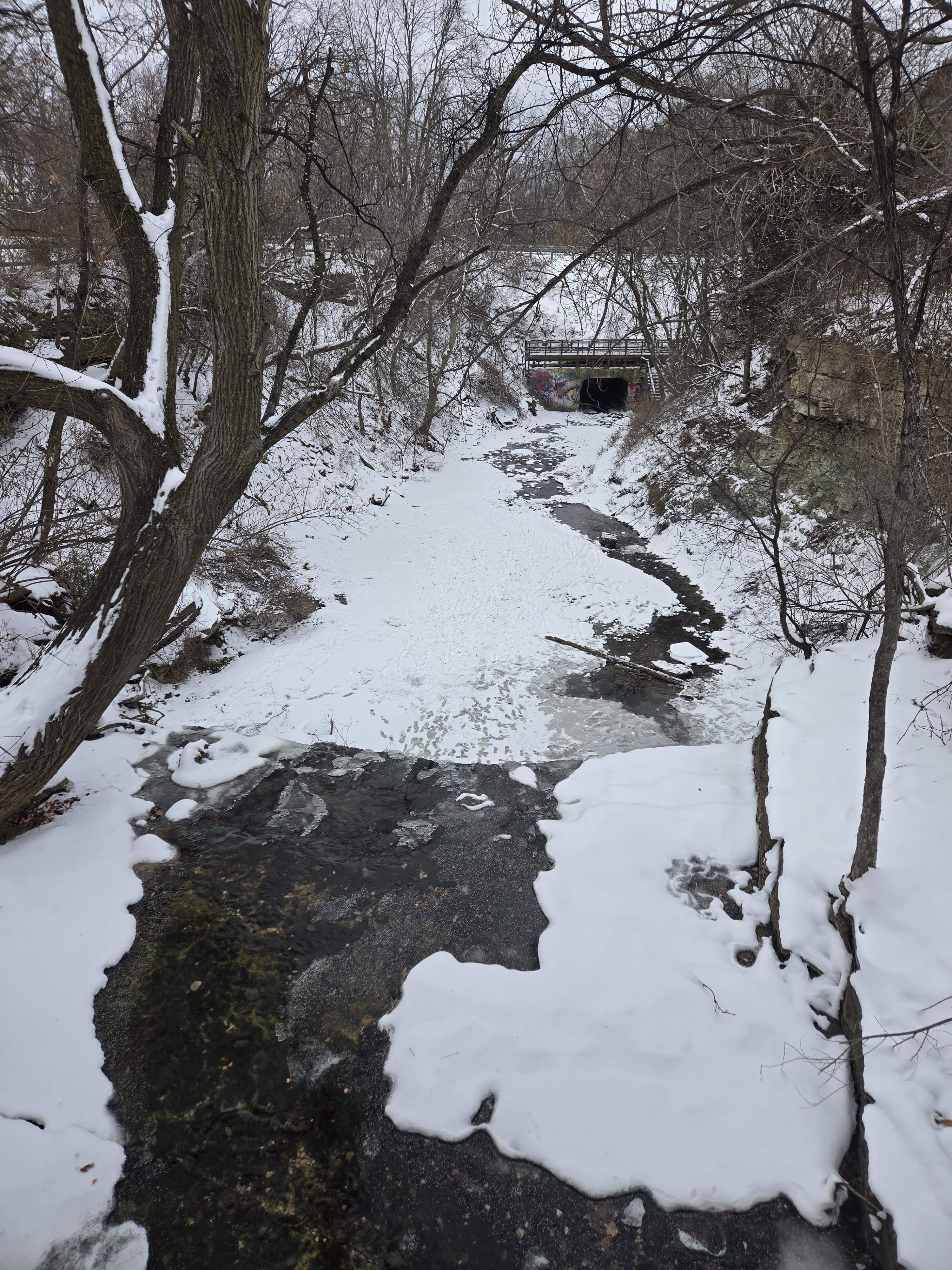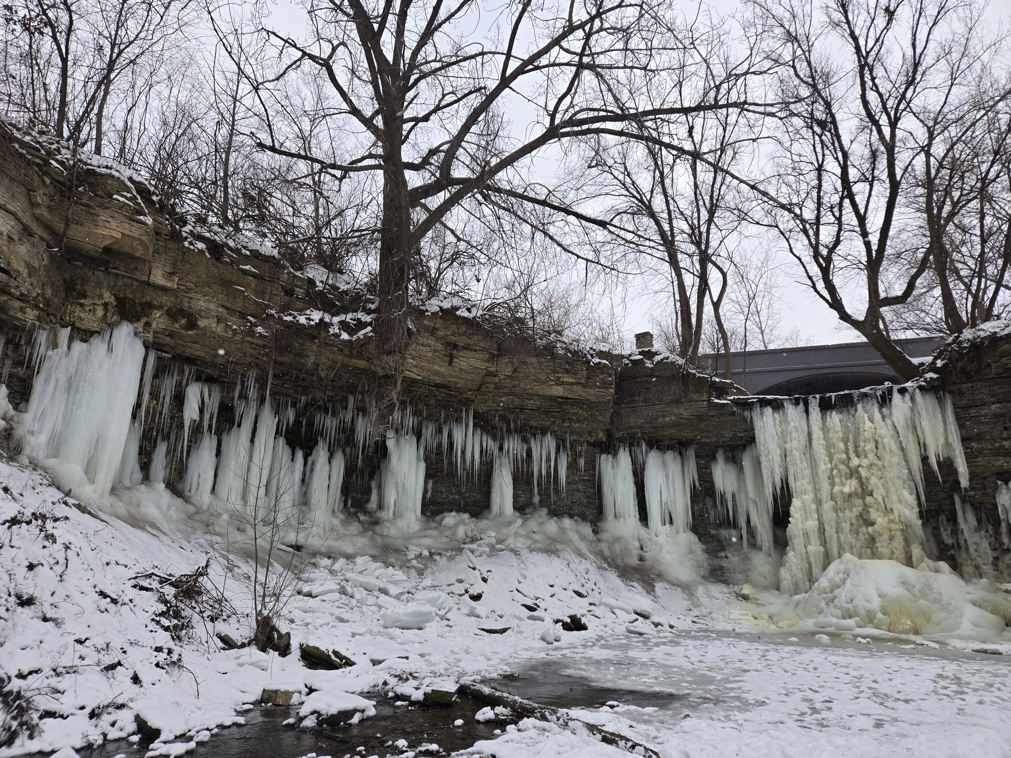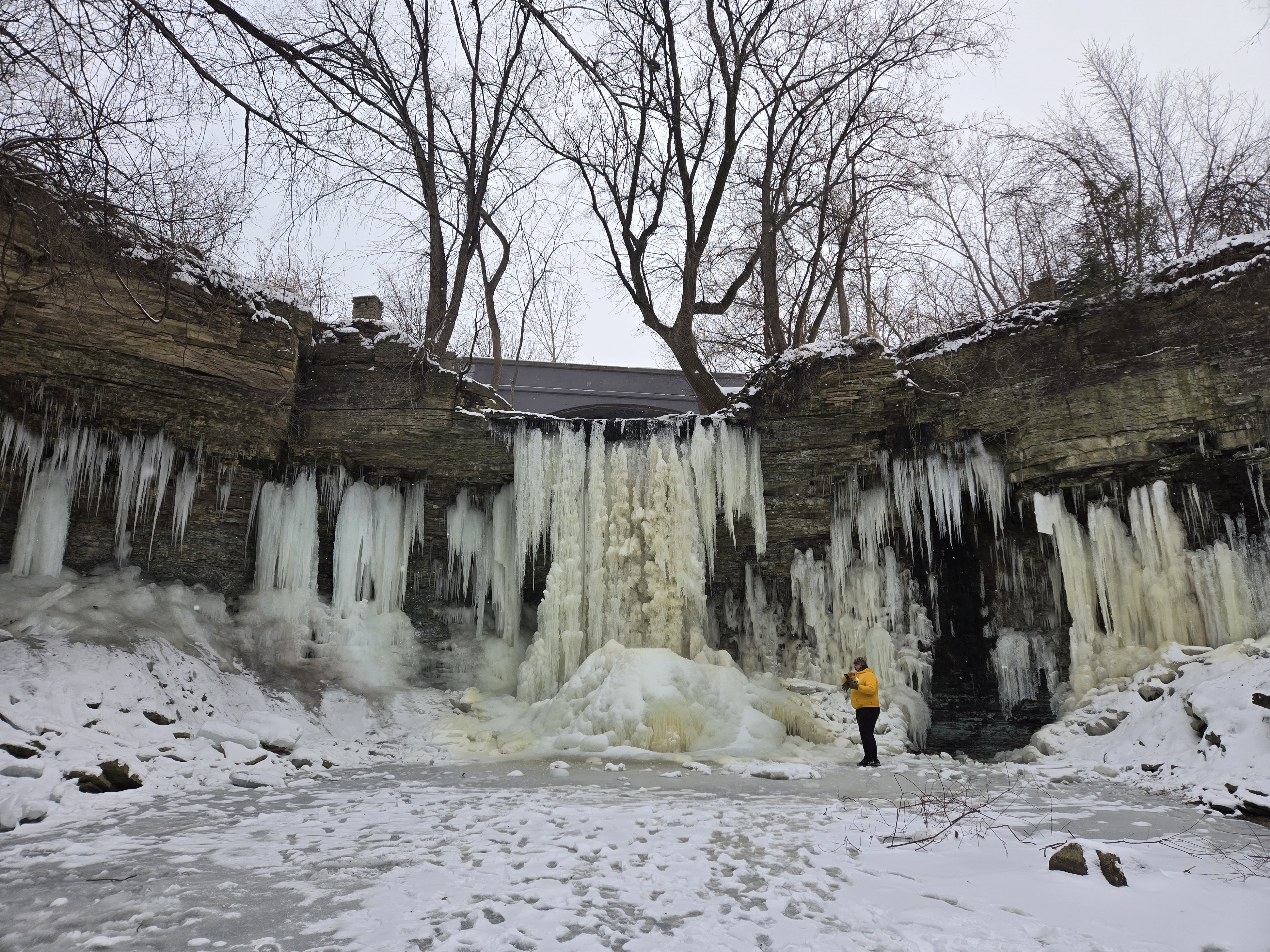 My brother, partner and I walked right up to the waterfall on the frozen stream in front of it. There was a little bit of water dripping so my brother and I stuck our hands in to feel the water. That was a fun mistake of ours, but well worth it and I enjoyed every second of that burning cold on my hands