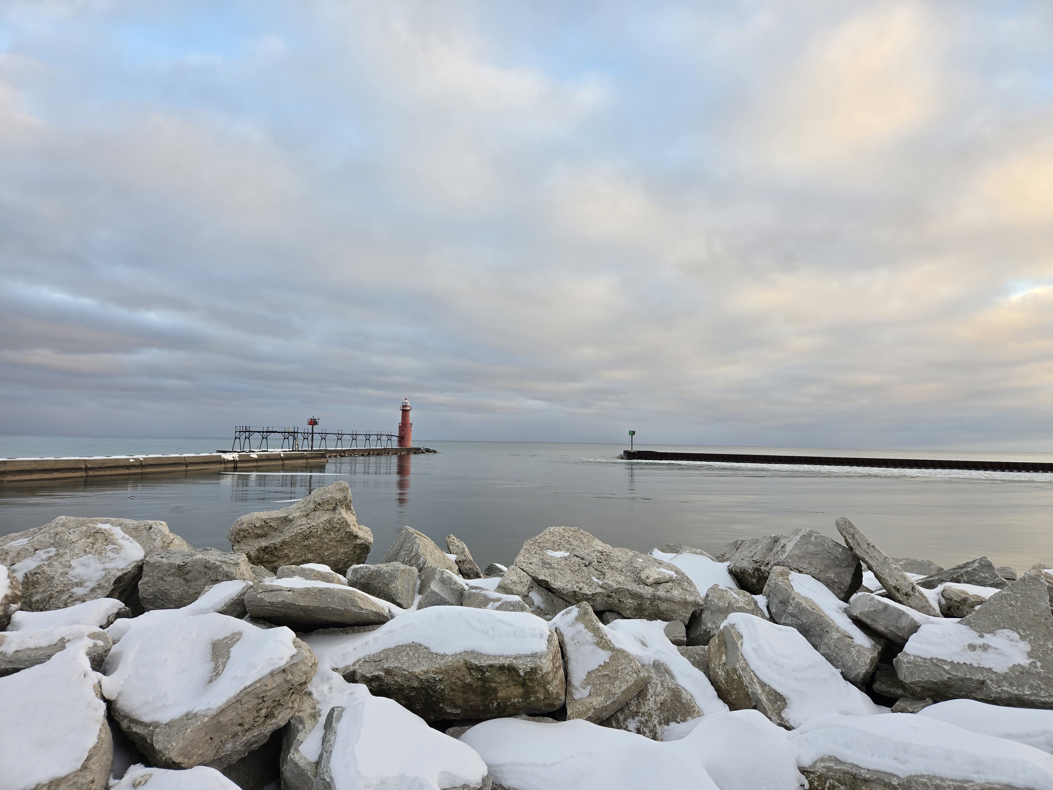After a while, we moved on to see another area of Lake Michigan. This time we made our way to Algoma Pierhead Lighthouse and got to enjoy Lake Michigan in the sunlight on Crescent Beach in Algoma, Michigan.